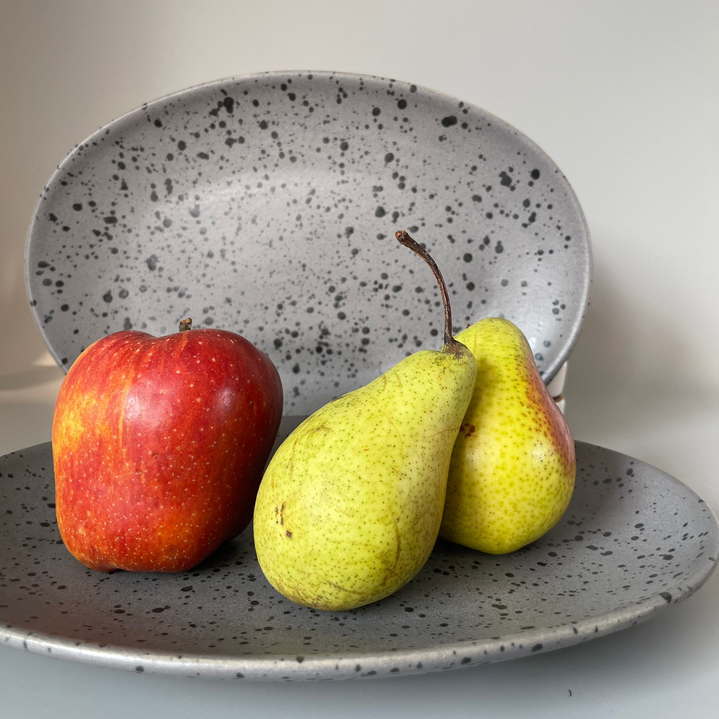 This oval ceramic platter, finished in a soft grey speckled glaze, is all about quiet beauty. Its earthy, textured surface brings a grounding touch to whatever you serve—whether it’s mithai, appetisers, snacks, or a handful of everyday moments.