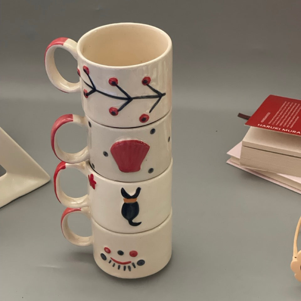 Each cup in this stackable set carries its own quiet personality: a seashell, a delicate branch, a minimalist dog outline, a playful eyelash and a lips. Whether you’re hosting, journaling with chai, or just enjoying a mid-afternoon coffee, these cups bring a gentle joy to your everyday rituals.